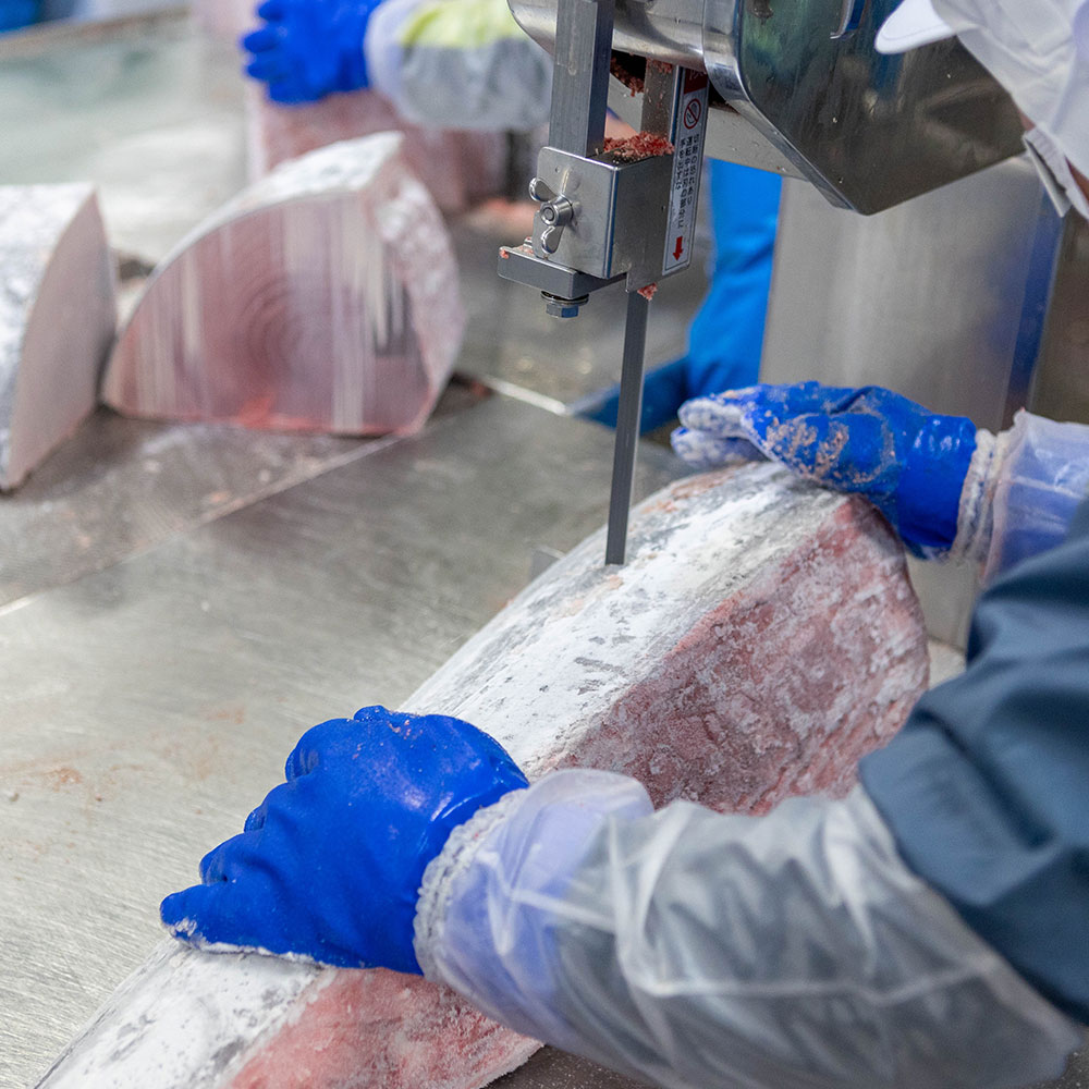 静岡県内に拠点を有し、まぐろを主とする水産物の調達、加工(刺身・ネギトロ等)、冷凍保管(超低温)、販売までの一連の事業領域を営む。なかでもマルハニチログループでは取扱いが少ないメバチマグロやキハダマグロの一次加工は、最も得意とし、高度なノウハウを蓄積しています。